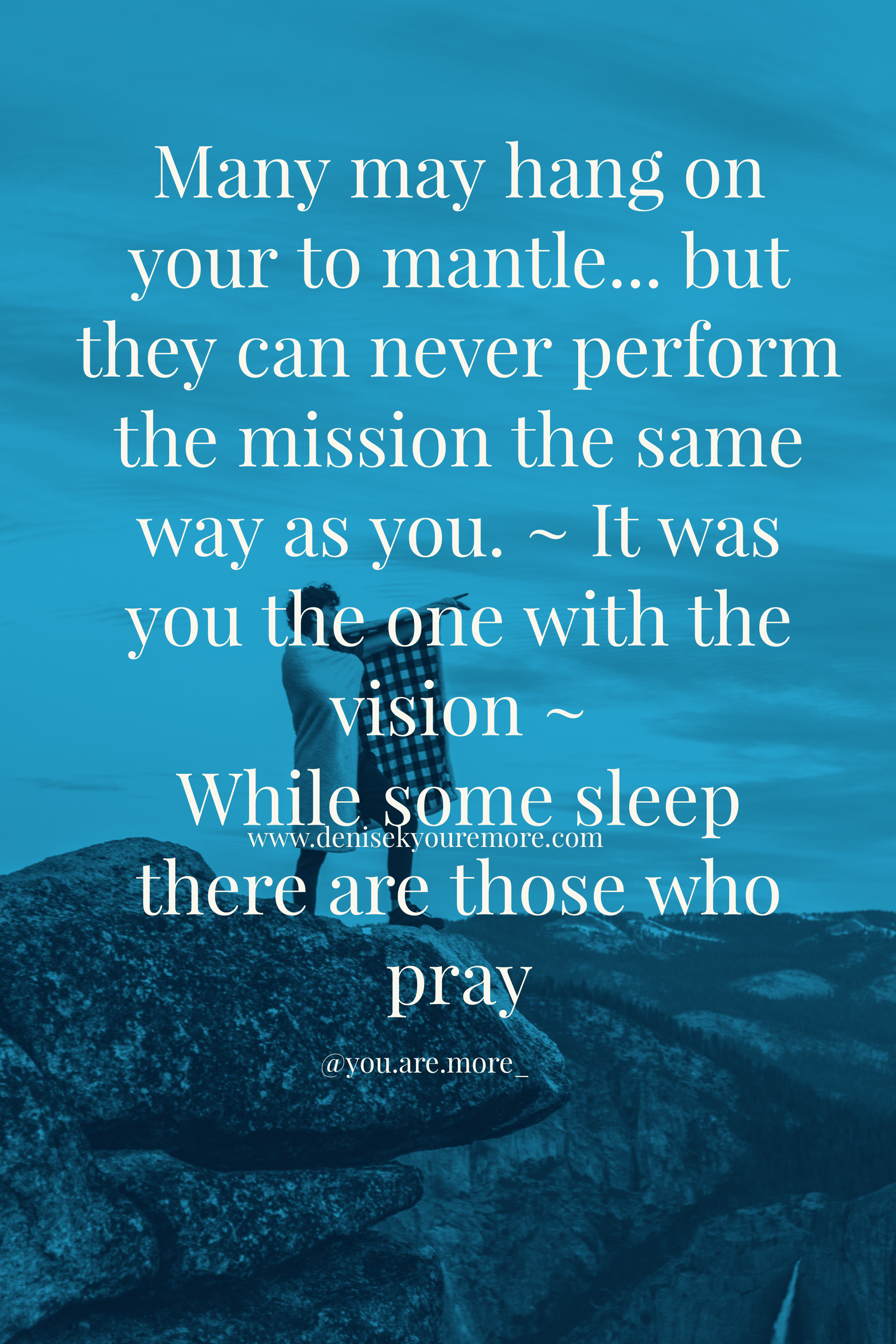 Many may hang on to your mantle but they can never perform the mission the same way as you.